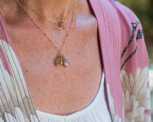 CELESTE Sapphire and Topaz Cluster Gold Necklace